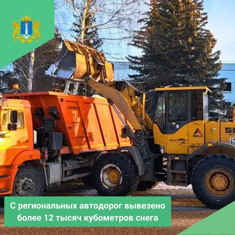 Для обеспечения безопасного проезда по транзитным участкам автодорог выполняется вывоз снежных масс на специальные площадки, согласованный с администрациями муниципальных образований. На данный момент с транзитных участков автодорог регионального значения вывезено более 12 тыс. м3 снега