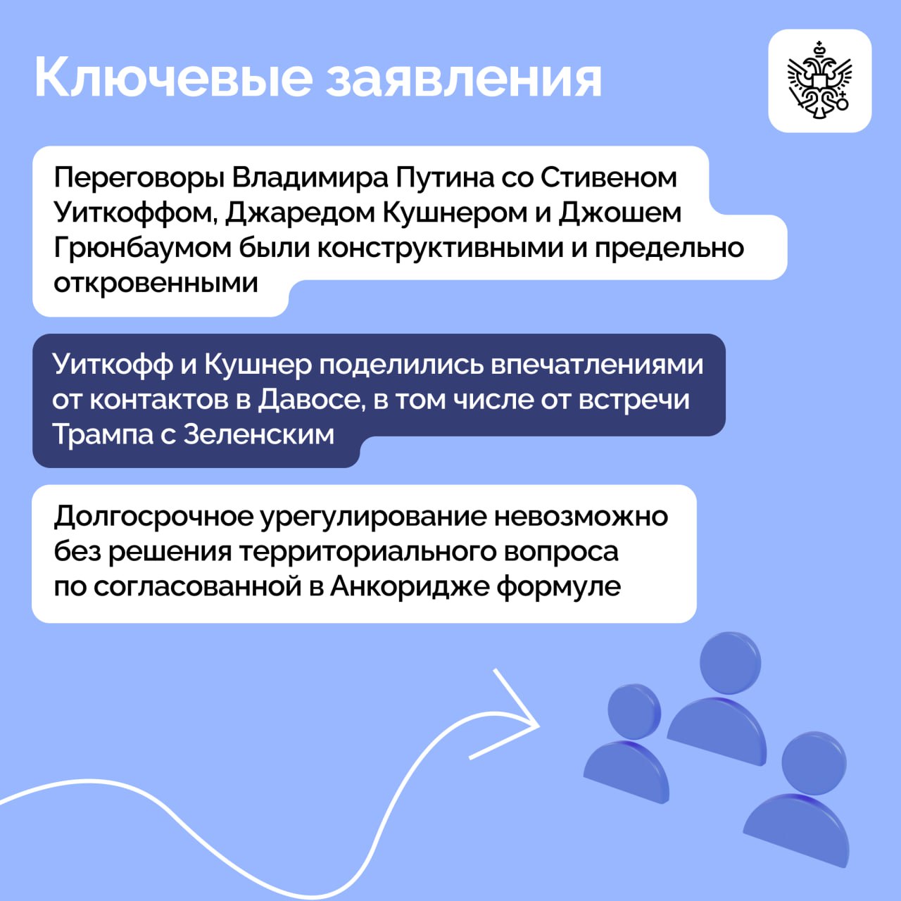 Помощник Главы государства Юрий Ушаков прокомментировал итоги встречи лидера России со спецпосланником Президента США Стивеном Уиткоффом и членами американской делегации.