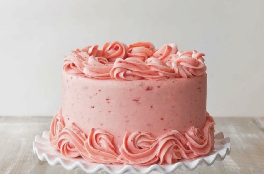 Бисквит, мягкий и воздушный, пропитан насыщенным клубничным сиропом, чередуется с нежным клубничным курдом и покрыт великолепным клубничным кремом.