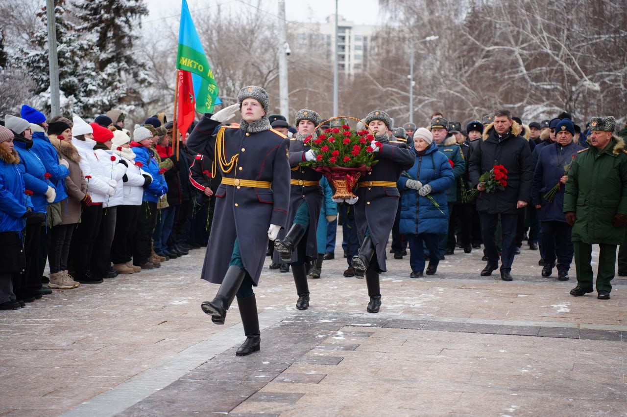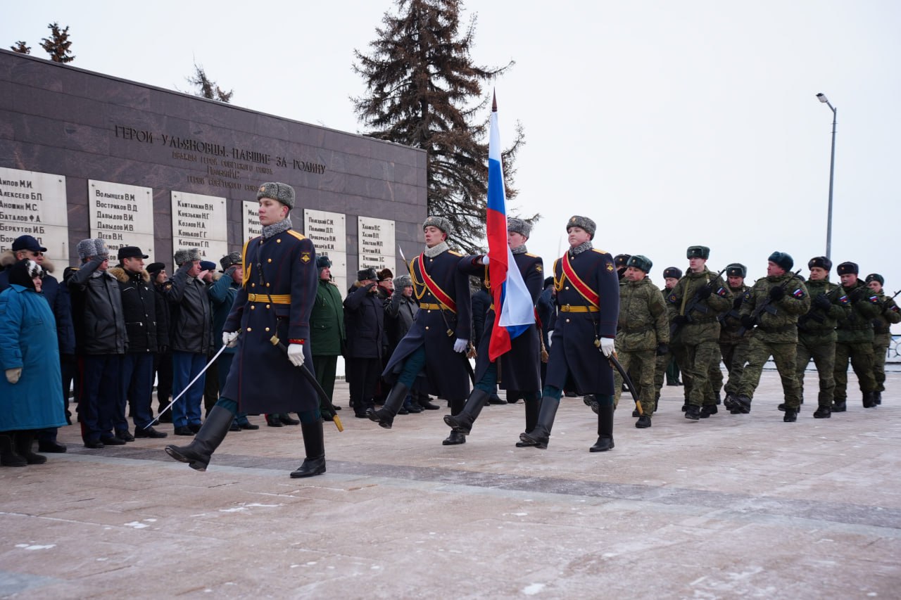На площади был выставлен почётный караул, звучали тематические музыкальные произведения, цветы к Вечному огню возложили официальные лица и жители Ульяновска. Участники мероприятия почтили память погибших минутой молчания и оружейным салютом