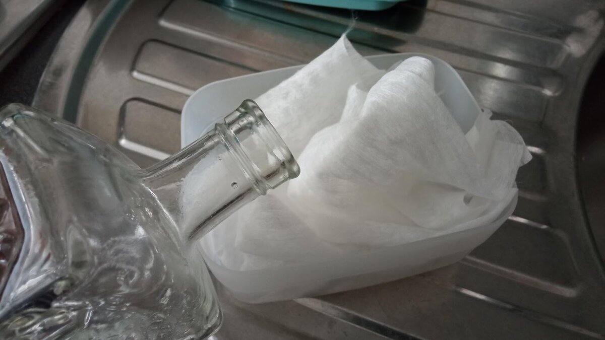 Небольшие детали часто определяют результат: тканевые салфетки поуютно лежат на полке, их удобно брать, а баночка с рабочим раствором становится привычной. Раствор готовится просто: водку или другой спирт смешивают с водой, добавляют соду и уксус, а для аромата добавляют каплю кондиционера для белья. Получившаяся смесь не только чистит, но и дезинфицирует и оставляет спокойный запах после уборки.