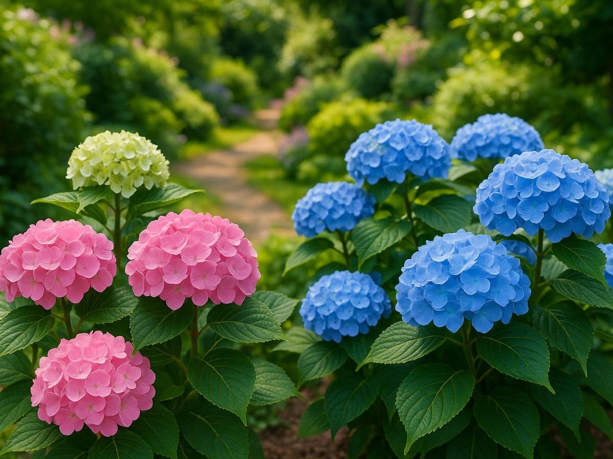 Главный фактор окраски соцветий — кислотность почвы и доступность алюминия для корней. В кислой среде алюминий становится доступнее, и цветы тяготеют к синему оттенку; нейтральная и щелочная почва переведет их в розовую гамму. Управление pH позволяет «заказать» нужный тон без спешки в весну.