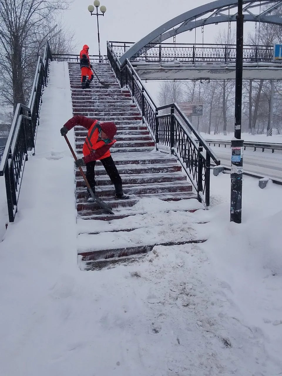 В условиях сильного снегопада сотрудники муниципальных предприятий обеспечивают комфортное передвижение участников дорожного движения и трудятся там, где работа техники затруднена: на мостах и путепроводах, тротуарах, остановках, пешеходных переходах.