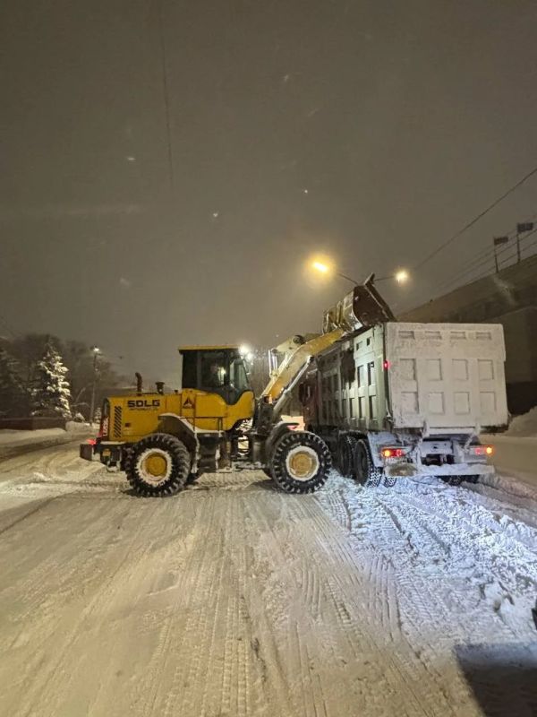 Минувшей ночью в снегоуборочных работах было задействовано 100 дорожных машин. По городу курсировало семь колонн спецтехники, работали три комплекса по погрузке и вывозу снега