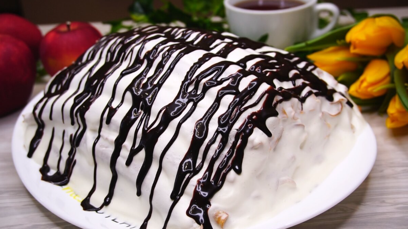 6. Обязательно стоит оставить торт в холодильнике хотя бы на 2 часа, а лучше всего на ночь, чтобы он хорошо пропитался.