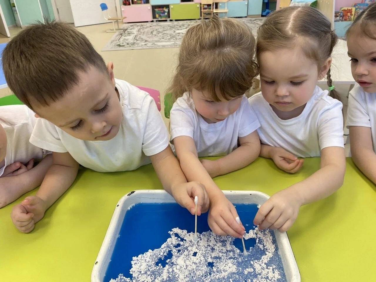 Воспитанники детского сада «Уникум» проводят свои первые исследования: ребята с огромным интересом принимают участие в опыте под названием «Раскалываем лёд»
