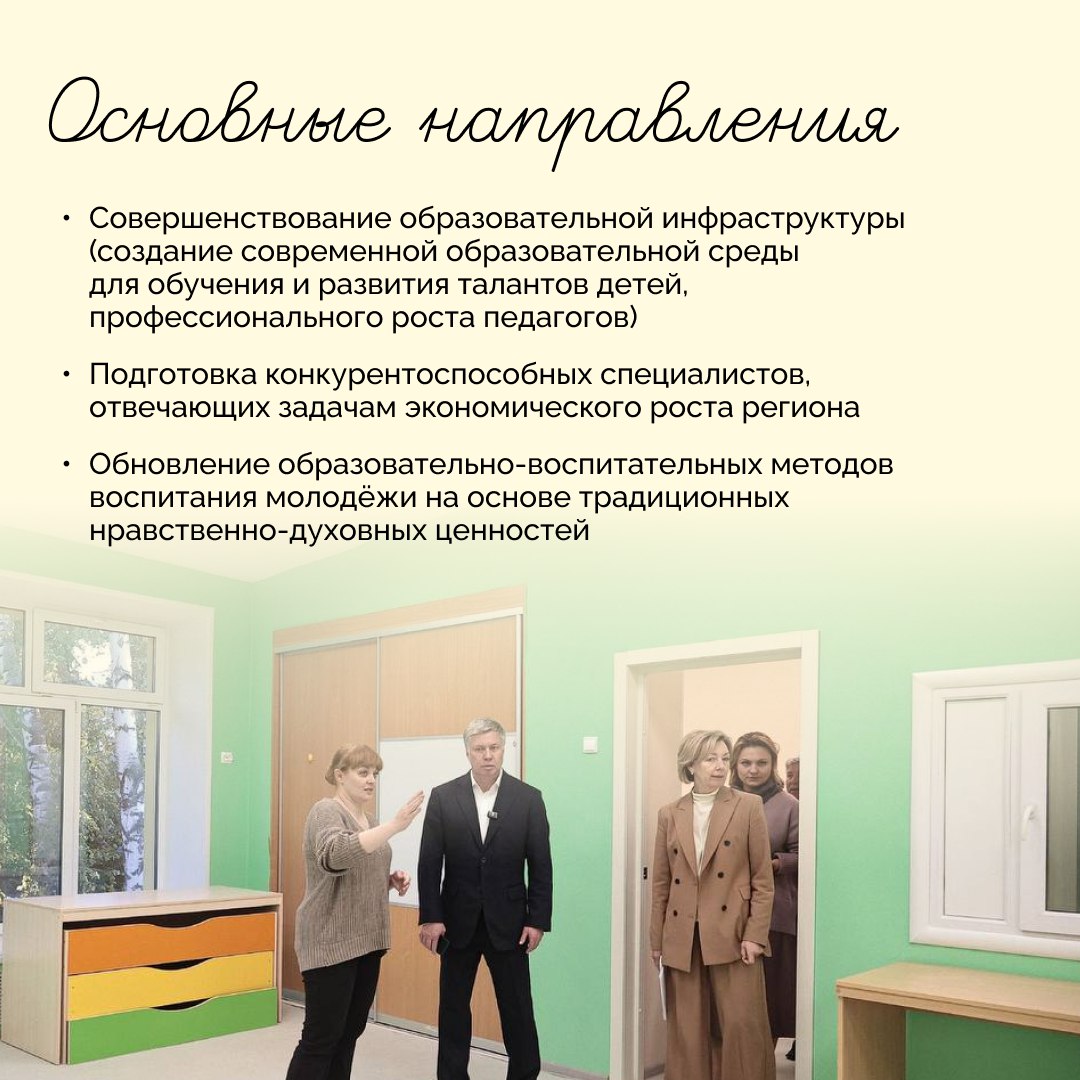 В регионе продолжат обновлять школы и детские сады, запускать новые образовательные проекты, привлекать учителей в сельскую местность, оказывать содействие в профессиональной переподготовке педагогов.