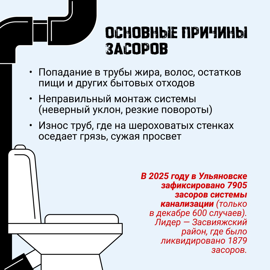 Многие не задумываются, но обычный бытовой мусор в унитазе или сливе главная причина засоров и неприятных запахов. К примеру, в 2025 году только в Ульяновске случилось 7 905 таких инцидентов это почти 22 засора в день.
