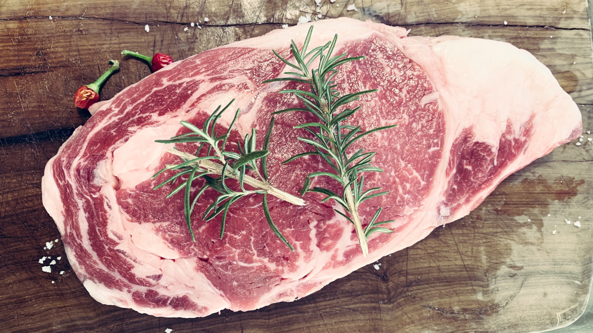 «Сперва стейк должен полежать при комнатной температуре, чтобы не попасть на сковороду холодным. Жарить мясо лучше всего на сливочном топленом масле, можно добавить чеснок, розмарин, тимьян и слайсы имбиря.