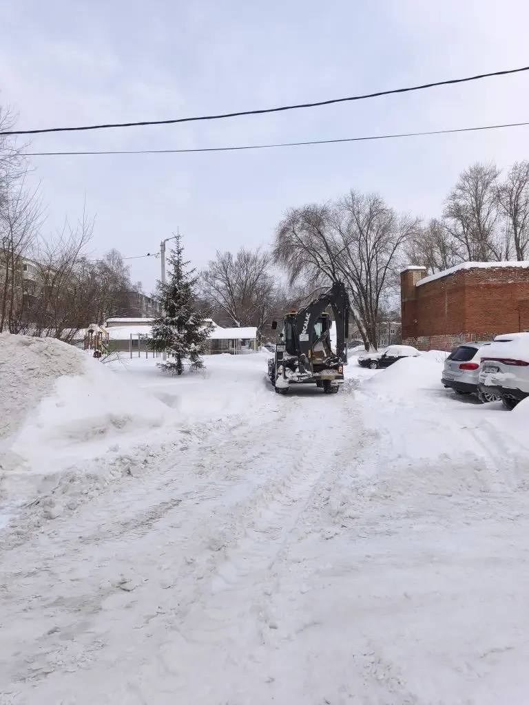 По поручению главы города Александра Болдакина в каждом районе продолжает работать привлечённая техника, а также ручная очистка территорий от снега и наледи.