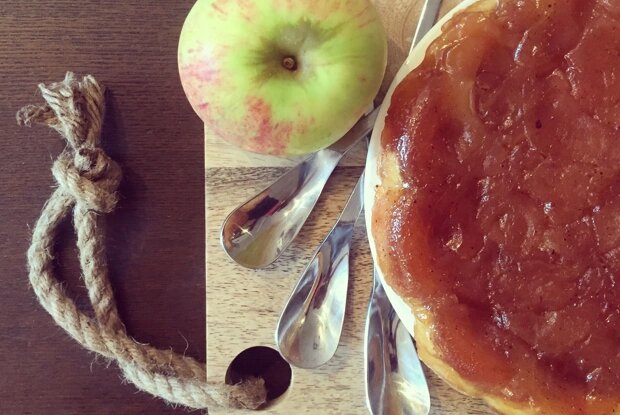 Приготовление основы: На небольшом огне растопить 70 г сливочного масла вместе с тростниковым сахаром. Добавить очищенные и нарезанные на четвертинки яблоки. Готовить смесь 35-40 минут до тех пор, пока яблоки не станут мягкими и слегка подрумянятся. В это время разогреть духовку до 190°C.Замешивание теста: В глубокой миске просеять пшеничную муку и щепотку соли. Затем добавить остатки сливочного масла в кубиках и тщательно перемешать до образования крошки. Ввести яичный желток и немного холодной воды, замесить тесто, сформировать шар, завернуть в пленку и оставить в холодильнике на полчаса.Формирование и выпекание: Раскатать тесто так, чтобы оно было больше диаметра сковороды, толщиной около 3 мм. Накрыть им яблоки и слегка прижать края. Обрезать излишки теста и выпекать в духовке 25-30 минут, пока тесто не станет золотистым. После этого оставить тарт на 5 минут, а затем перевернуть на блюдо.Для подачи приготовить крем Шантильи: в миске взбить сливки с сахарной пудрой и ванилью до крепкой пены. Этот десерт станет поистине уникальным, если подать его с воздушным кремом, пишет канал "Еда.ру".