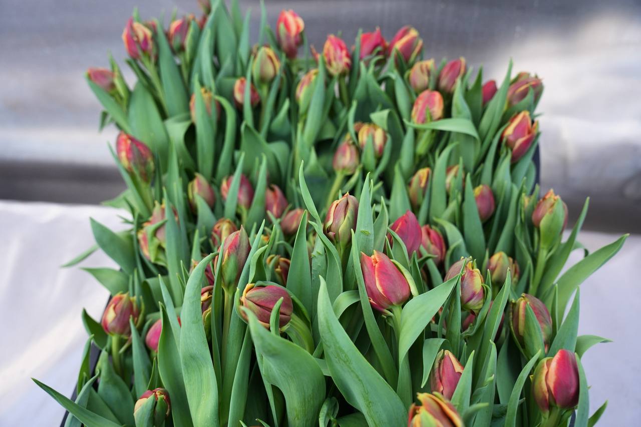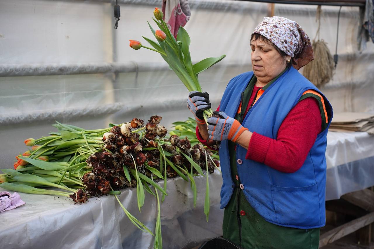 В этом году в теплицах вырастили сразу 10 новых сортов, среди которых: пионовидные «Оранж Шерпа», белые «Альбатрос», розовые «Пинк Ардор», «Династия», «Циркуит», красные «Стронг Ред» и жёлтые «Стронг Голд», а также махровые тюльпаны красного цвета «Каракас», оранжево-красные «Конго» и жёлтые «Авангард»
