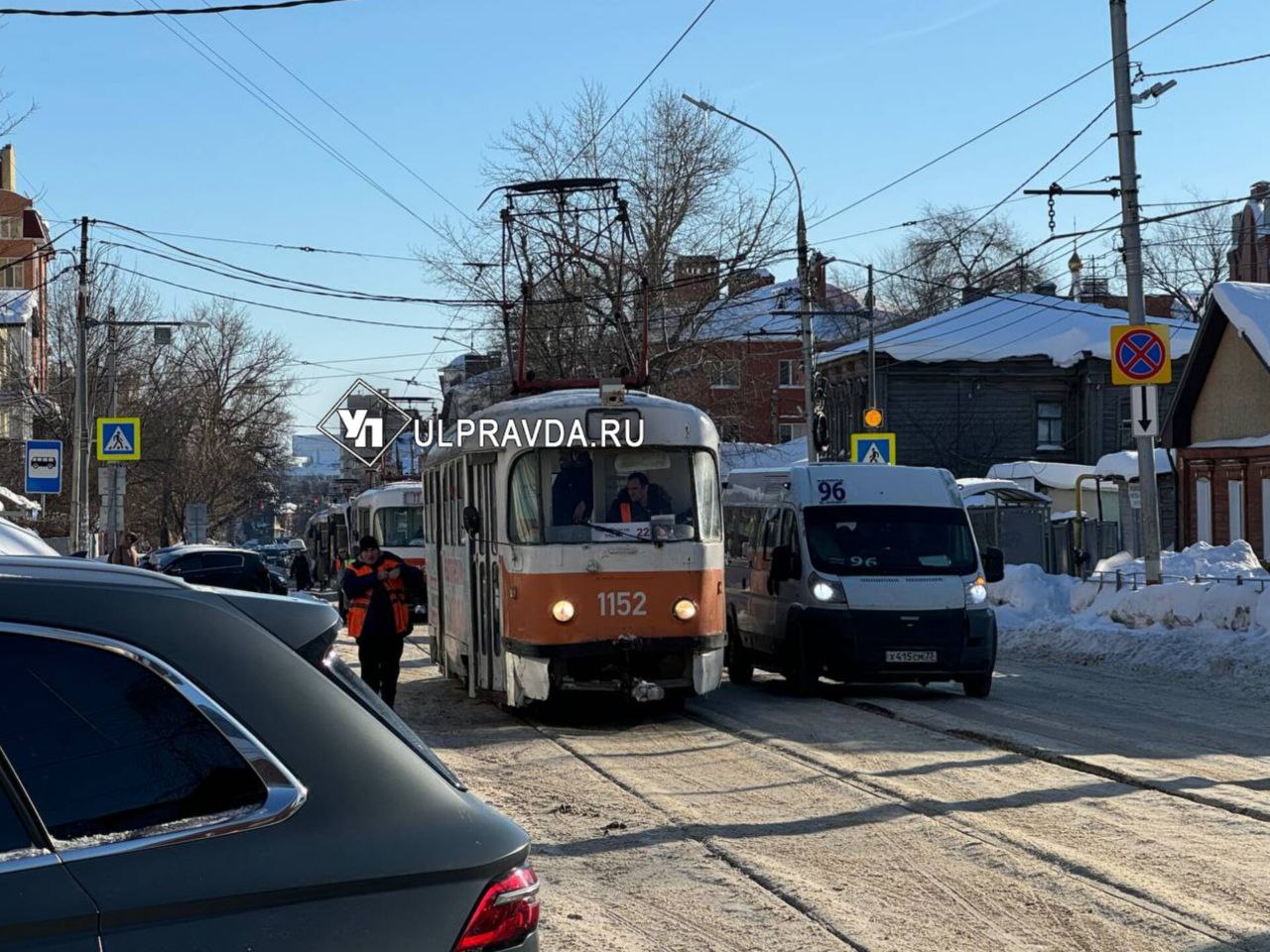 Снова мастер парковки на Радищева мешает трамваю