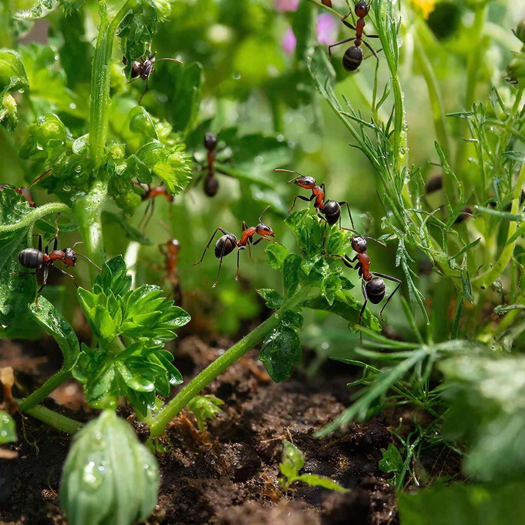 Основная угроза, которую представляют муравьи, заключается в их симбиозе с тлей. Они защищают это вредное насекомое, собирая сладкую падь, из-за чего тля активно размножается на ваших растениях. Такой симбиоз ослабляет культурные растения и может привести к распространению вирусов. Более того, муравьи могут повреждать корни, когда строят свои гнезда.
