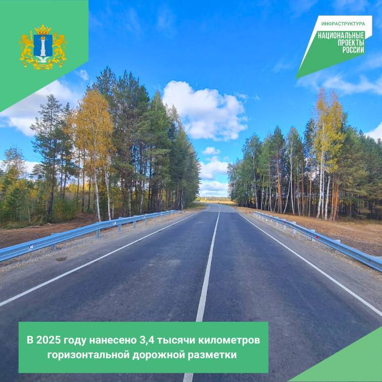 В 2025 году на дорожной сети регионального и межмуниципального значения выполнены работы по нанесению горизонтальной дорожной разметки протяженностью 3,4 тысячи км, установке удерживающего барьерного ограждения протяженностью около семи км, установке и замене порядка двух тысяч дорожных знаков, устройству 76 Г-образных опор и освещению пешеходных переходов.