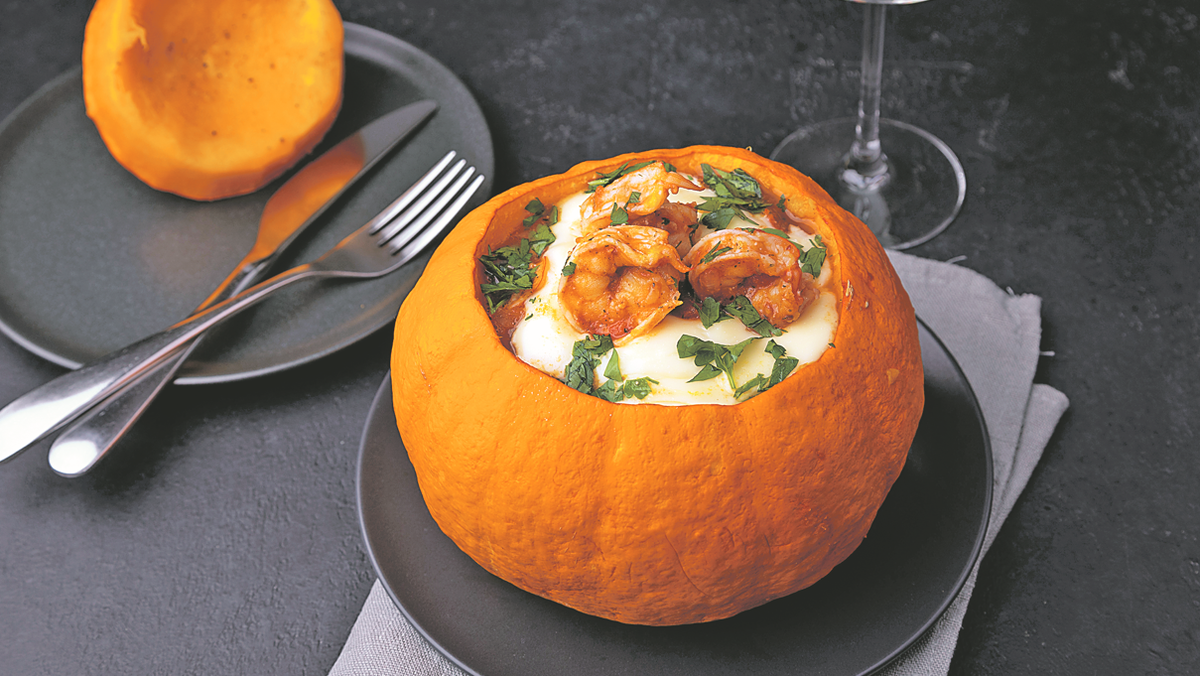 Этот рецепт, рассчитанный на 4 порции, сочетает в себе все прелести тыквы и морепродуктов. Для его приготовления понадобятся следующие ингредиенты: