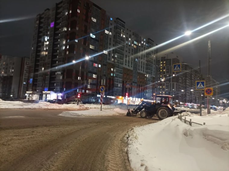 Семь колонн комбинированных дорожных машин подметали проезжую часть, 15 тракторов – убирали снег с тротуаров, остановок, пешеходных переходов, расширяли перекрёстки. Десять мобильных бригад очищали остановки общественного транспорта