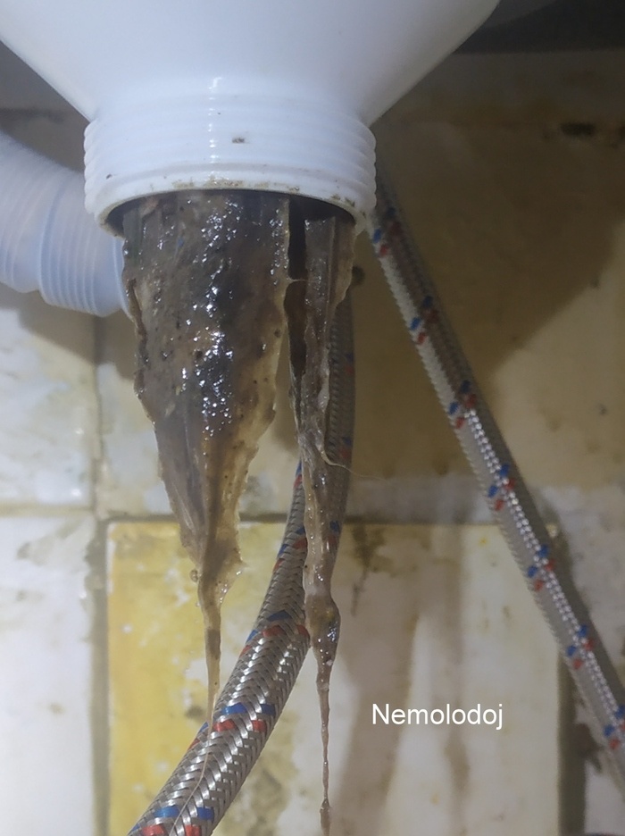 При проверке состояния системы слива было обнаружено накопление растительных и животных жиров, частиц пищи, а также волос и шерсти домашних животных. После первого применения очистителя заметное уменьшение засора уже было очевидно. Согласно инструкции, при необходимости процедуру можно повторить, чего было сделано еще два раза.