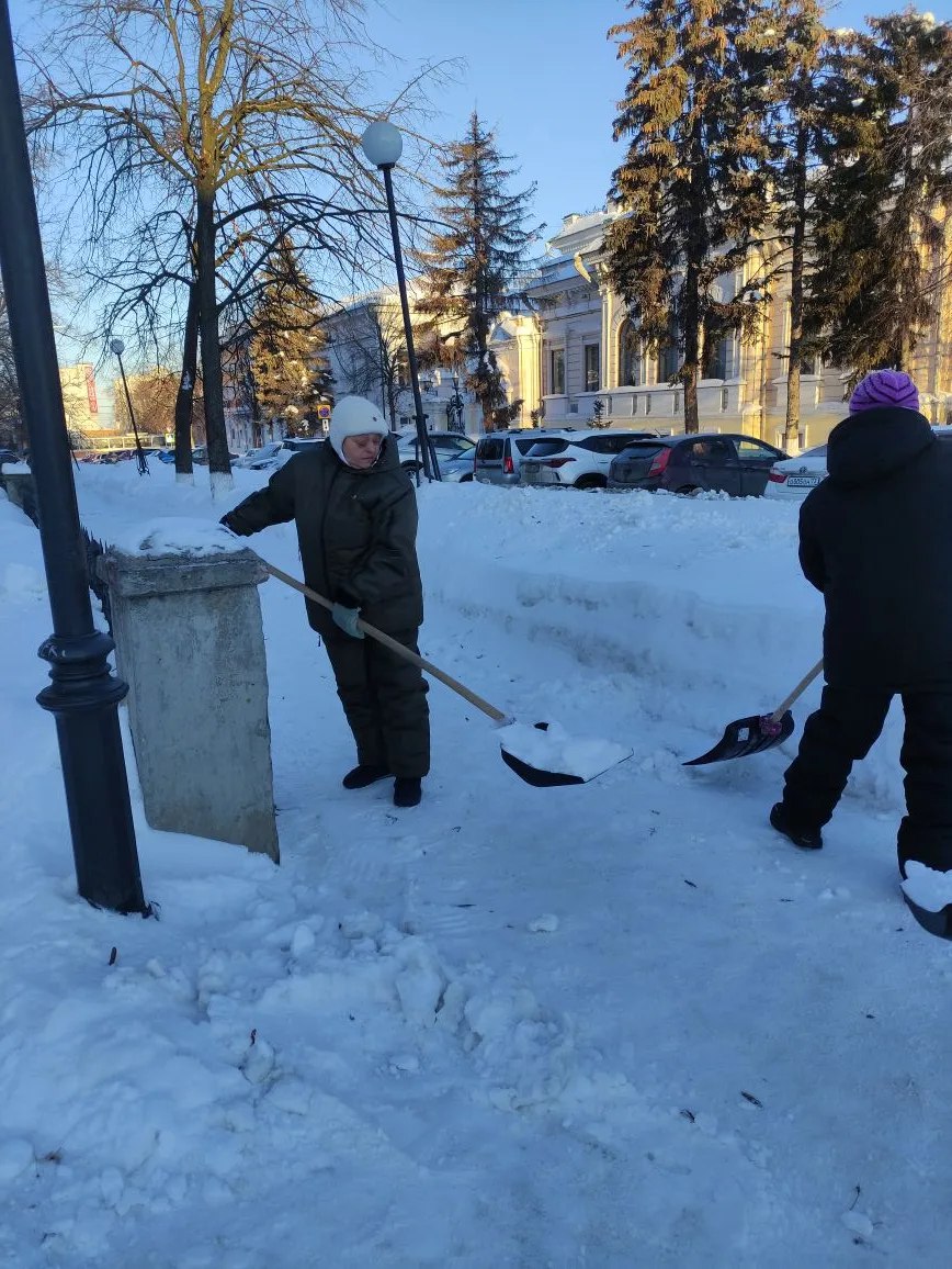 Сегодня наши бригады работают как обычно: с самого раннего утра расчищают от снега пешеходные дорожки в скверах, бульварах и на аллеях.