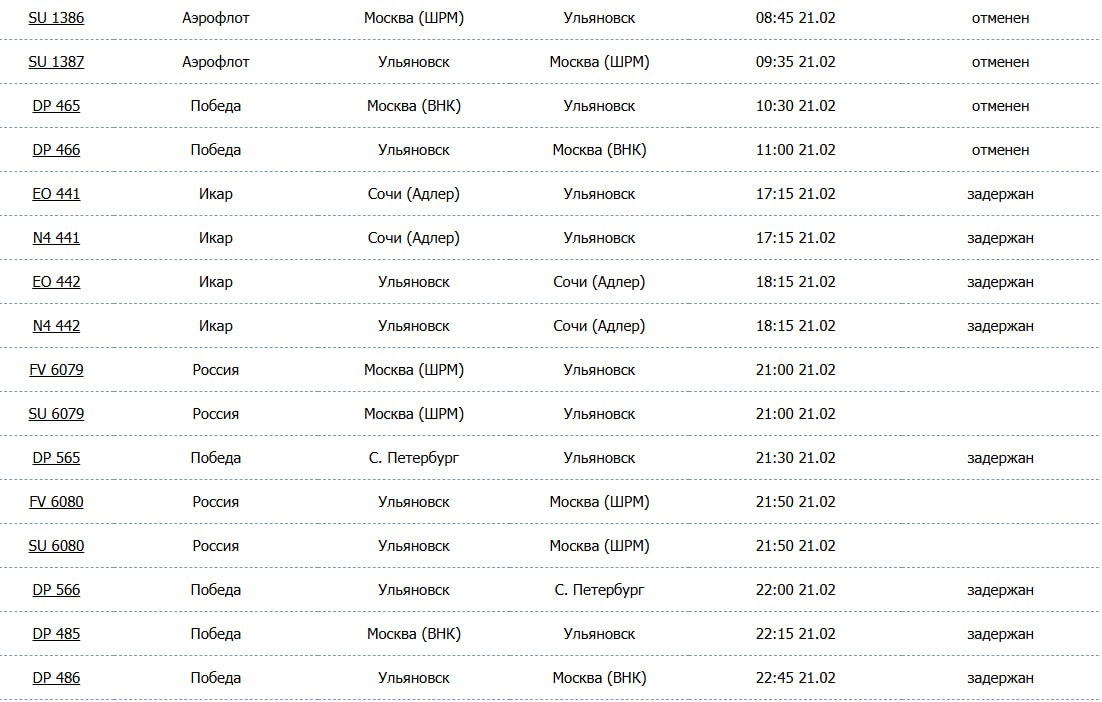 В Ульяновске 21 февраля отменены и задержаны 12 рейсов