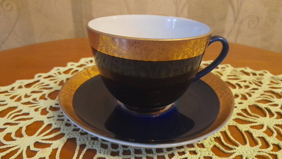 Все начинания связаны с воспоминаниями. Вдохновившись семейным сервизом "Золотые ромашки", на который долгое время смотрели с восхищением, был собран и еще один сервиз – кобальт с золотыми полосами. Этот сервиз принадлежал тёте Тоне, и воспоминания о нём остались в памяти на долгие годы. Вопрос о том, откуда такая любовь к "Золотым ромашкам", часто возникает среди коллекционеров. Интересно, что именно "Золотые ромашки" и "Кобальт" были одними из самых доступных сервизов, однако, в магазинах 70-х годов было сложно найти такие предметы — это было скорее фантастикой. Первую чайную пару, выполненную в кобальтовой технике, получила в подарок от дочери, которая приобрела её на платформе Avito, пишет Дзен-канал "Фарфор-винтаж и не только".