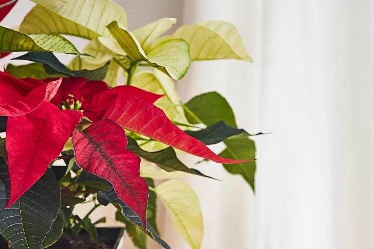 Цветки пуансеттии — это настоящие звезды. Хотя традиционно они ассоциируются с ярко-красным цветом, встречаются также белые, жёлтые и розовые варианты, а также интересные миксы. Самым эффектным считается «мраморный» сорт. Однако следует помнить, что вне цветения пуансеттия выглядит довольно скромно, и её ценят в основном за краткосрочную красоту.