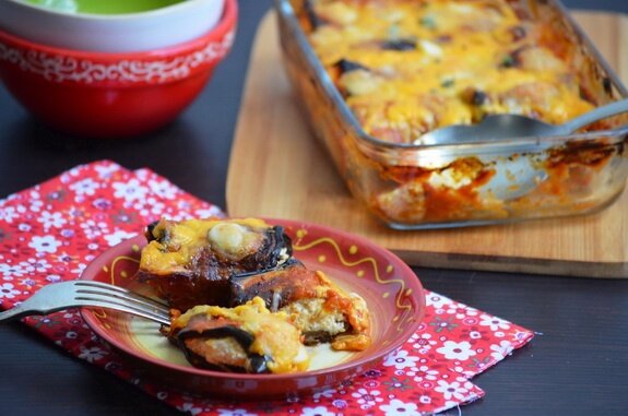 Натереть выдержанный сыр на терке.Смешать рикотту с натертым сыром, орегано, немного соли и перца, добавить яйцо.Смазать форму для запекания оливковым маслом.На каждую баклажановую пластину положить 1 ст. ложку сырной начинки и аккуратно завернуть в рулет.Выложить рулеты в смазанную форму, залить соусом и запекать 15-20 минут.За 5-7 минут до окончания посыпать верх тертым сыром.Сочные баклажаны с рикоттой готовы! Наслаждайтесь этим полезным и вкусным блюдом на ужине с семьей!