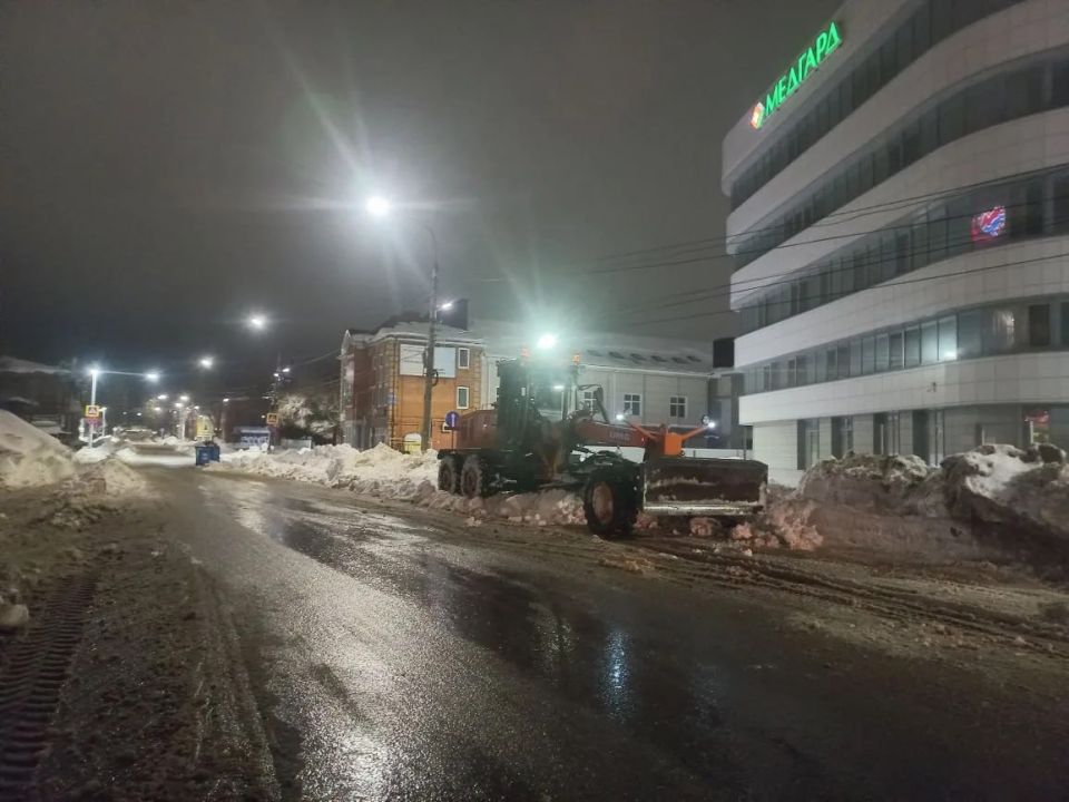 Перекидка снега для расширения проезжей части прошла на проспекте Антонова и проезде Аполлона Сысцова. Грейдер работал на улицах Кооперативной, Некрасова, Марата, Шевченко, Ленина. Для устранения гололёдных явлений использовано 12 тонн твёрдого реагента
