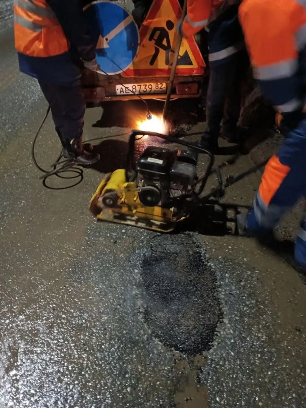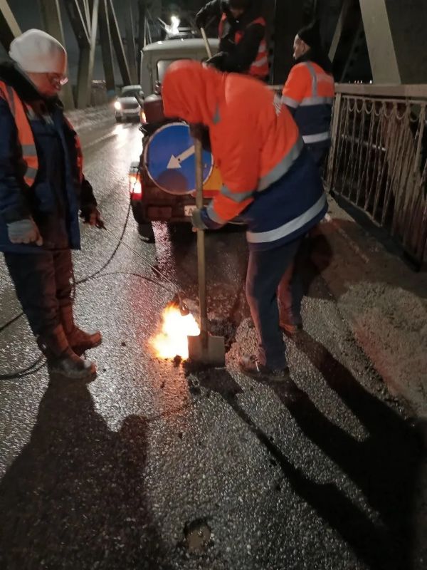 По указанию главы города Александра Болдакина для устранения дефектов проезжей части рабочие МБУ «Дорремстрой» применили холодный асфальт на Императорском мосту, Димитровградском шоссе, улицах Шофёров и Радищева