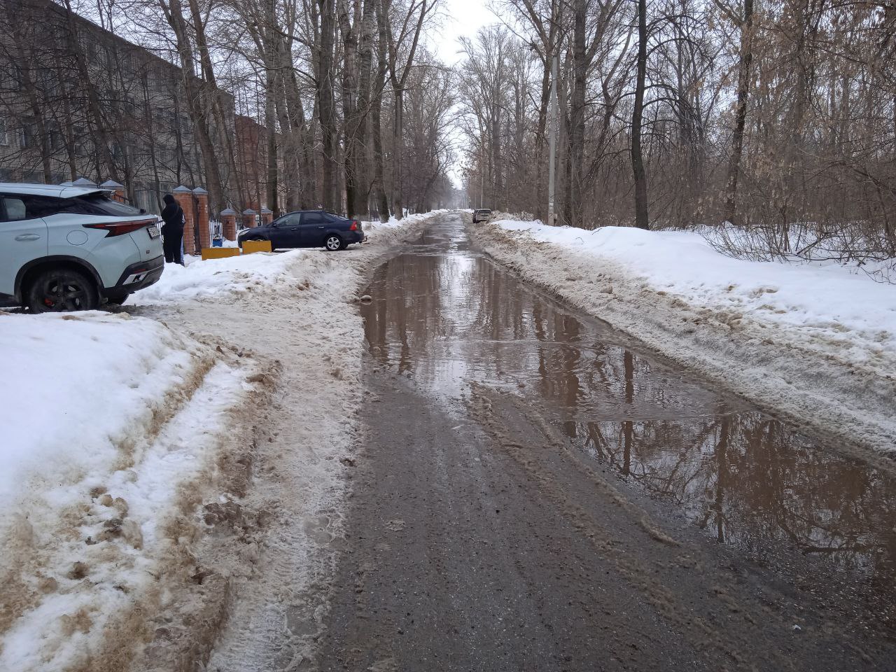 Подписчики жалуются на улицу Калнина, рядом с электромеханическим колледжем. Глубина лужи полметра — еле проехать