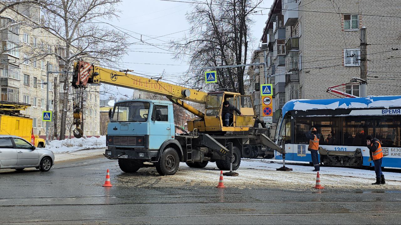 Движение трамваев через «Дамбу» в Ульяновске временно приостановлено. Вагоны едут по улице Радищева через центр.Причина – работающий на Верхнеполевой кран.«Вчера у одного из наших «Львят» «пробило колесо» (сломался колёсный бандаж). Водитель трамвая...