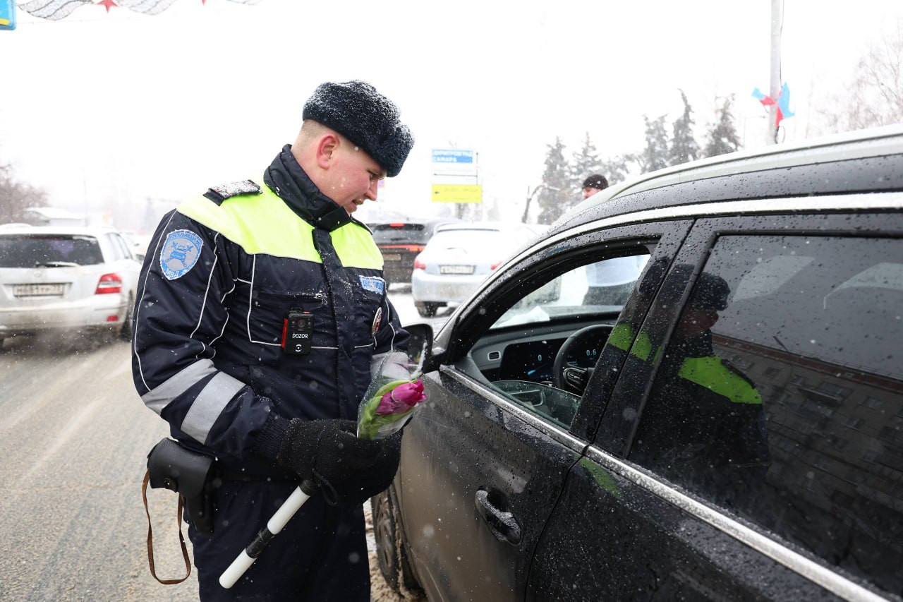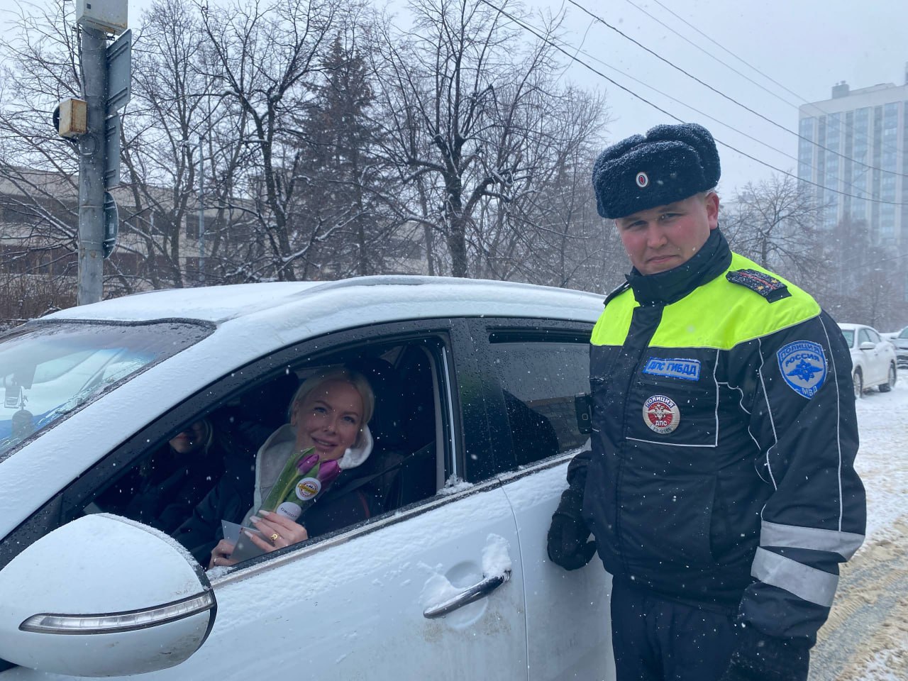 В Ульяновске инспекторы ГИБДД дарили женщинам-водителям цветы в канун 8 Марта