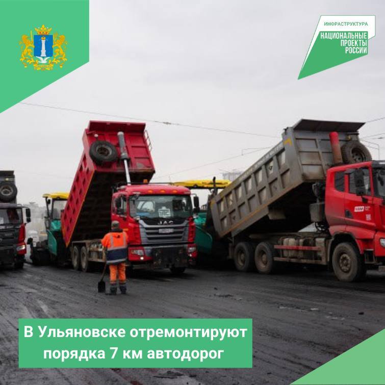 В городе Ульяновске по нацпроекту «Инфраструктура для жизни» отремонтируют порядка 7 км автодорог
