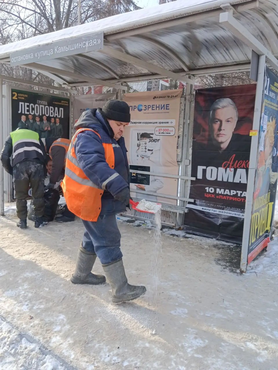 Очистка тротуаров велась на улицах Репина и Скочилова. Противогололёдная обработка тротуаров пескосоляной смесью выполнялась повсеместно. Для обработки дорог и тротуаров использовано 288 тонн пескосоляной смеси и 14,4 тонны реагента