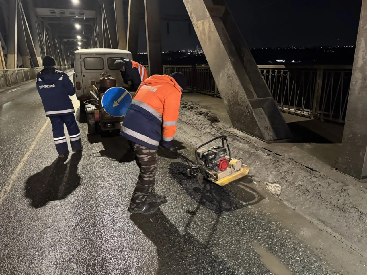 В ночь ульяновские дорожники ремонтировали асфальтовое покрытие на Императорском мосту