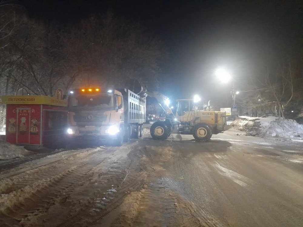 С городских улиц вывезено 134 самосвала снега: с улиц Тимирязева, Радищева, Гончарова, вдоль Императорского моста, с улиц Ботанической и Российской