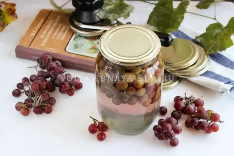 Рецепт этого ароматного напитка был заимствован из книги "Домашнее консервирование и хранение пищевых продуктов" автора И. С. Кравцова. Для приготовления компота важно выбирать только самые зрелые и мясистые гроздья винограда. Идеально подойдут как красные, так и белые сорта, каждый из которых подарит компоту уникальный вкус и цвет.