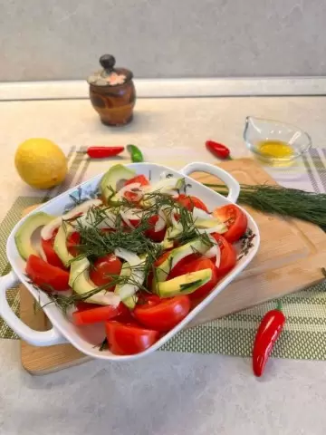 Этот салат — незаменимый спутник здорового питания: он прост в приготовлении, легок и доступен в любое время года. Салат из представителей семейства авокадо и ярких сочных помидоров станет ярким дополнением к вашему повседневному меню.