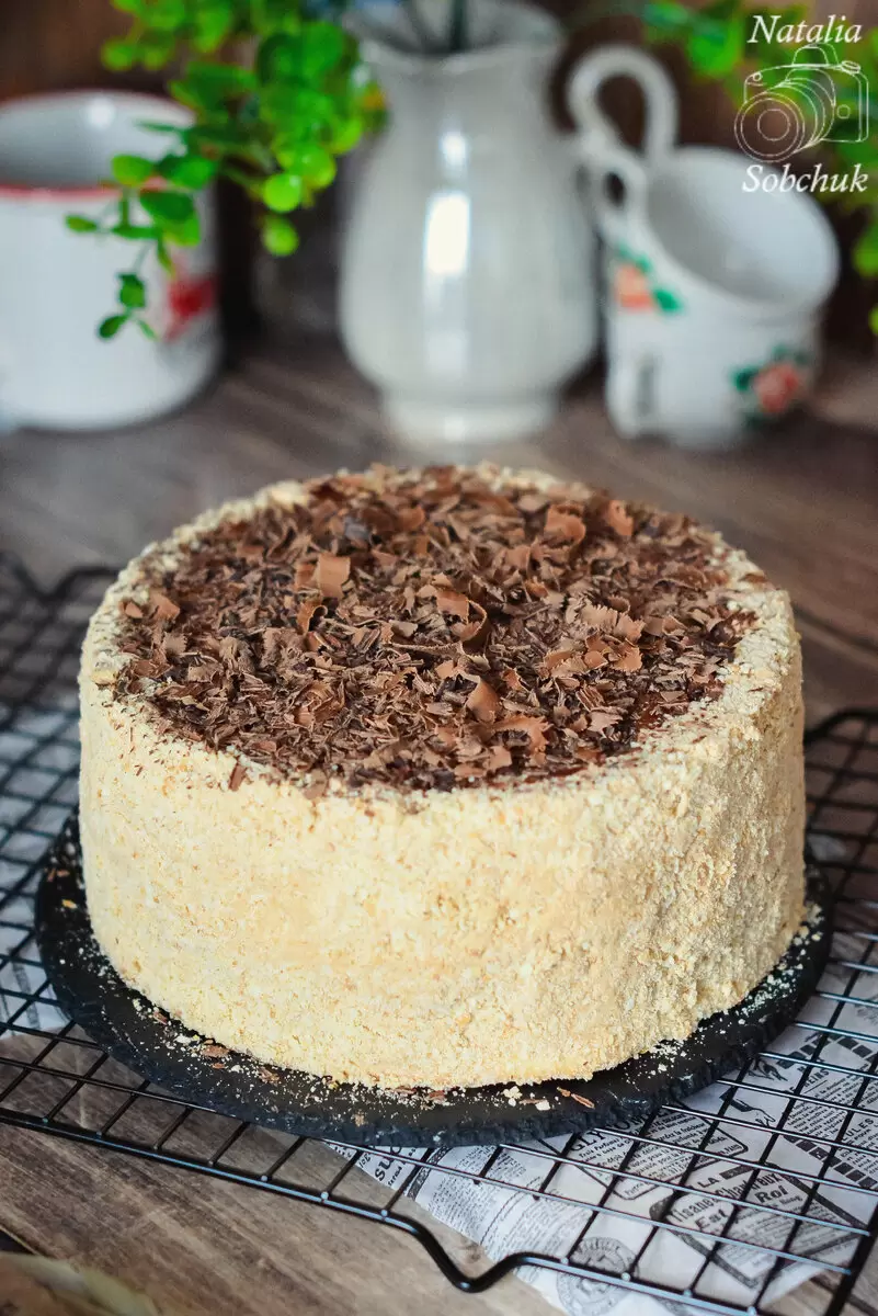 Теперь пришло время собрать торт: крем распределяется между коржами, а поверхность аккуратно выравнивается оставшимся кремом. Готовый торт можно декорировать шоколадной стружкой, придавая ему привлекательный вид. На все про все уходит не более 1,5 часов, а результат способен удивить даже самых взыскательных сладкоежек!