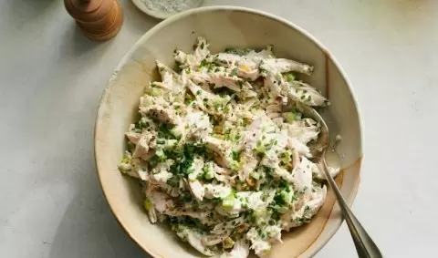 - Вместо привычного майонеза можно попробовать сделать легкий соус из греческого йогурта и горчицы, что значительно снизит калорийность блюда.