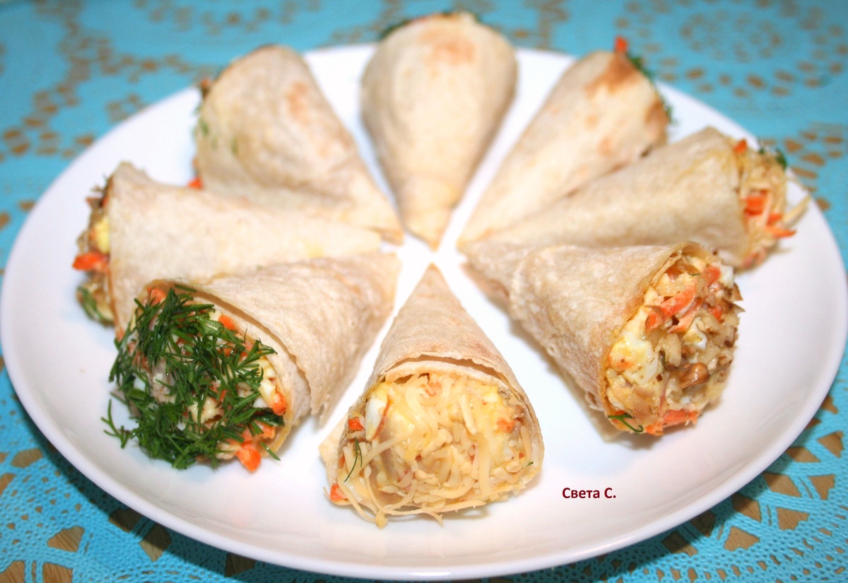 Необычный салат в хрустящих рожках из лаваша: удивите своих гостей!