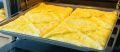 Из тонкого лаваша вырезать круги диаметром 14-15 см и затем разрезать их пополам.