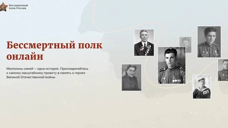 В День Победы состоится цифровое шествие героев Великой Отечественной войны. Оно начнется в 12:00 по местному времени на сайте: 2026.polkrf.ru/