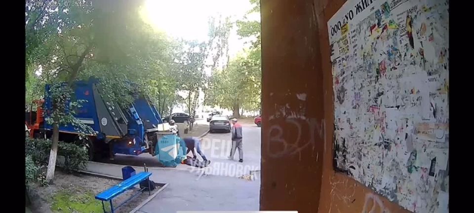 Возле одного из многоквартирных домов, во время разгрузки отходов из мусорного бака и загрузки их в мусоровоз стало плохо 67-летнему мужчине. Падение его на землю попало на видео, снятое камерой домофона.Видео: Треш Ульяновск Подписаться...